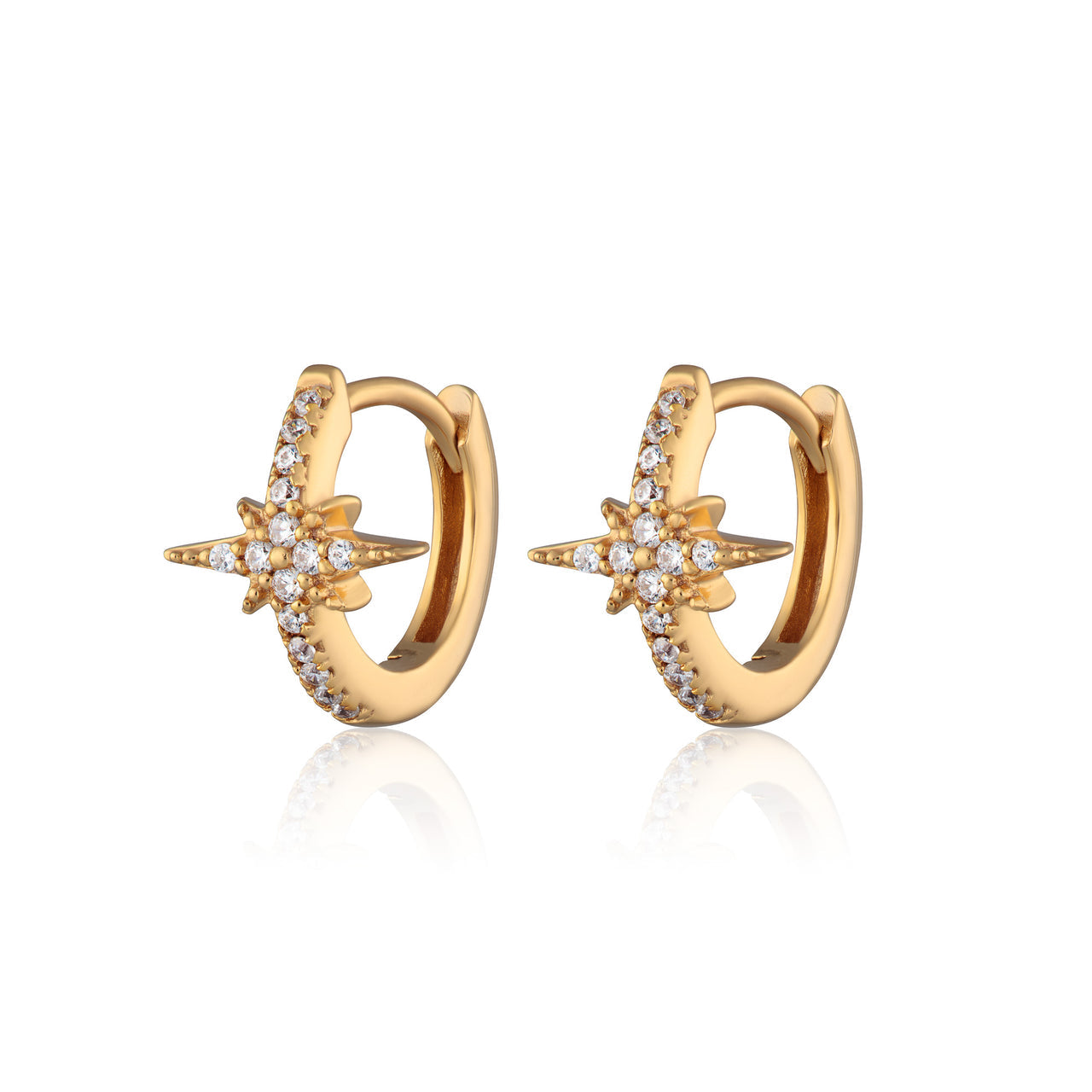 Add celestial styling to your ears with these starburst huggie hoop earrings, studded with clear cz stones