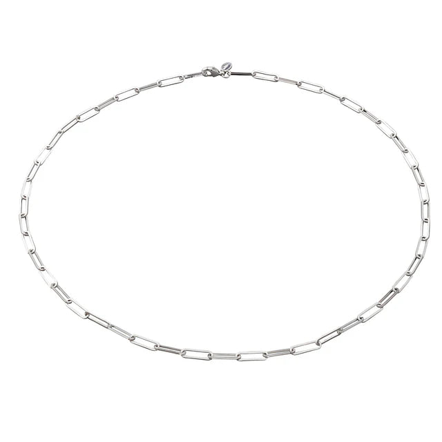 Simple modern elegance this long link chain choker is a trendy addition to our chain reaction collection. Available in silver or gold plated the interlocking oval links have a smooth flat surface and offer a reflective bounce of light as you move. Easily adjustable the lobster clasp attachment can be clipped onto any link allowing you to find the perfect size and fit. Perfect for layering with other necklaces this oval chain choker will be sure to become an everyday favourite.