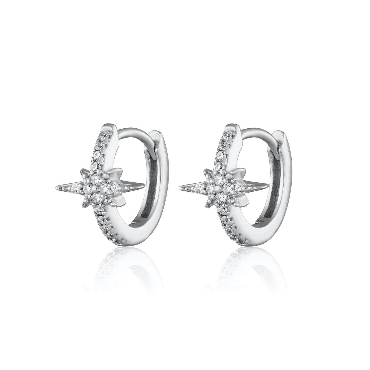 Add celestial styling to your ears with these starburst huggie hoop earrings, studded with clear cz stones