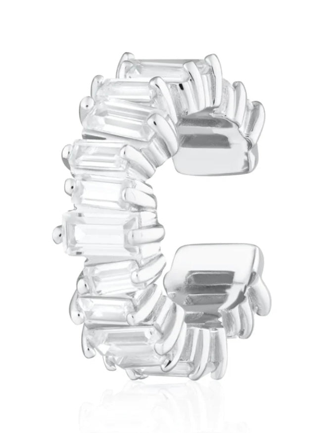 Add stylish sparkle to your upper ear with this baguette bar ear cuff, with no piercing required! Scream Pretty loves a baguette stone, and here we have stacked them together to create the ultimate sparkle in ear cuff form. Combine with slimmer styles, in an ear stack for piercing-free style. We like to wear this baguette ear cuff with our brand new statement oval baguette hoops and dainty teeny studs.