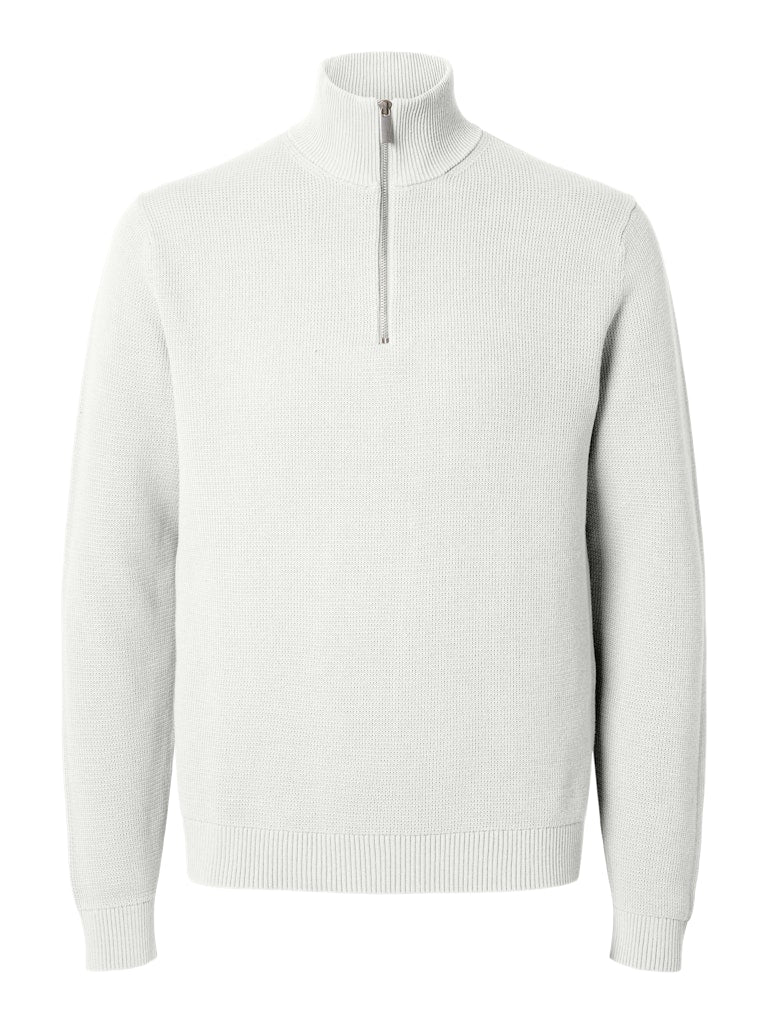 Crafted from premium knitted fabric, this pullover boasts a high neck and long sleeves for a sophisticated look. The ribbed cuffs and half zip fastening add a touch of luxury to this essential piece.