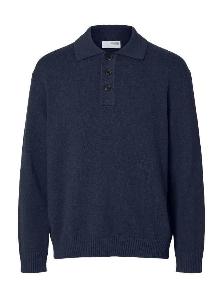 This Selected Homme Jakob Relaxed Polo in Navy Blazer/Melange offers a timeless, comfortable fit with long sleeves and dropped shoulders. Featuring ribbed cuffs and a classic polo neck, it’s perfect for everyday wear with a relaxed silhouette.