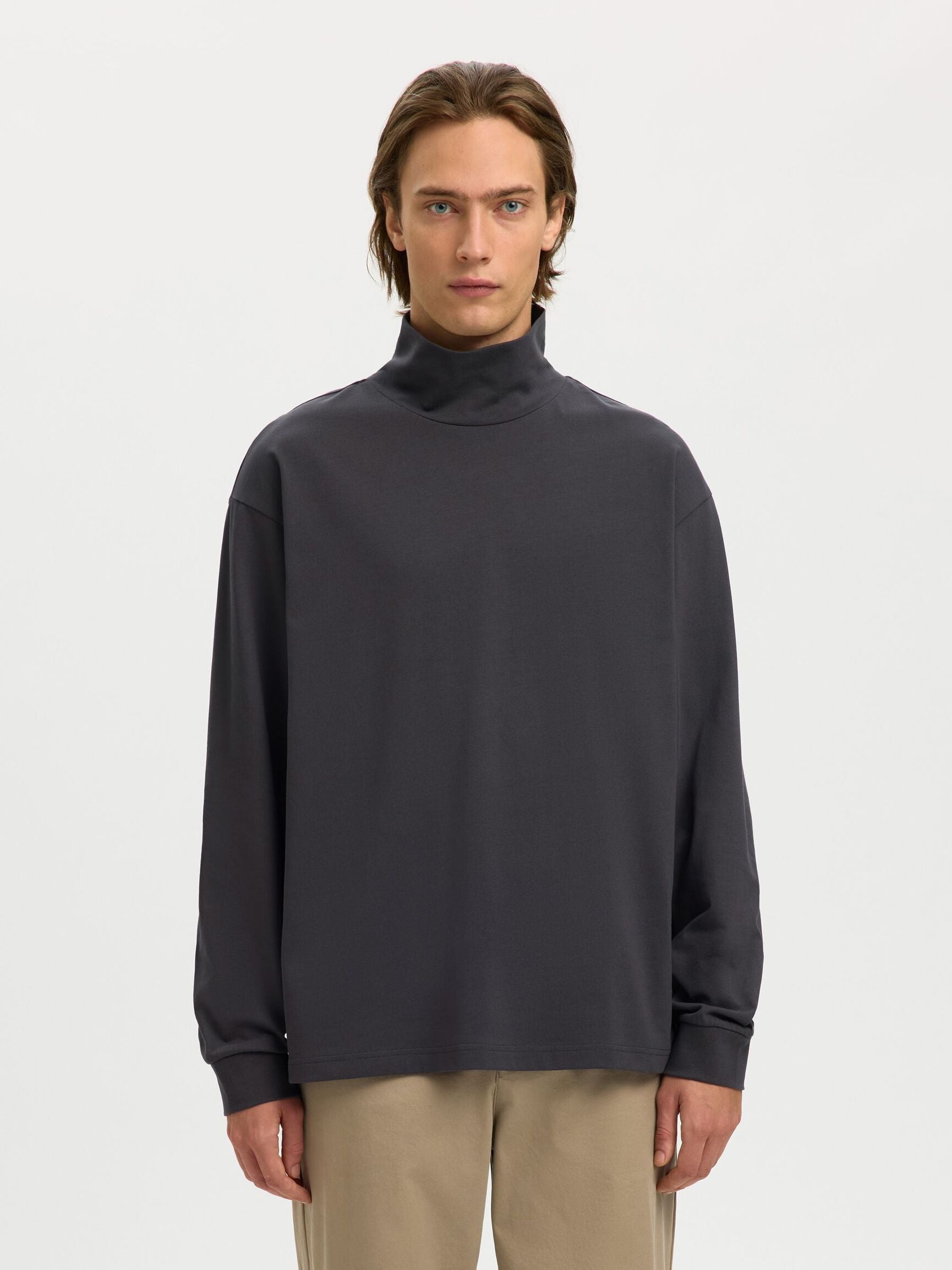 Selected Homme Relax Roll Neck Tee - Asphalt