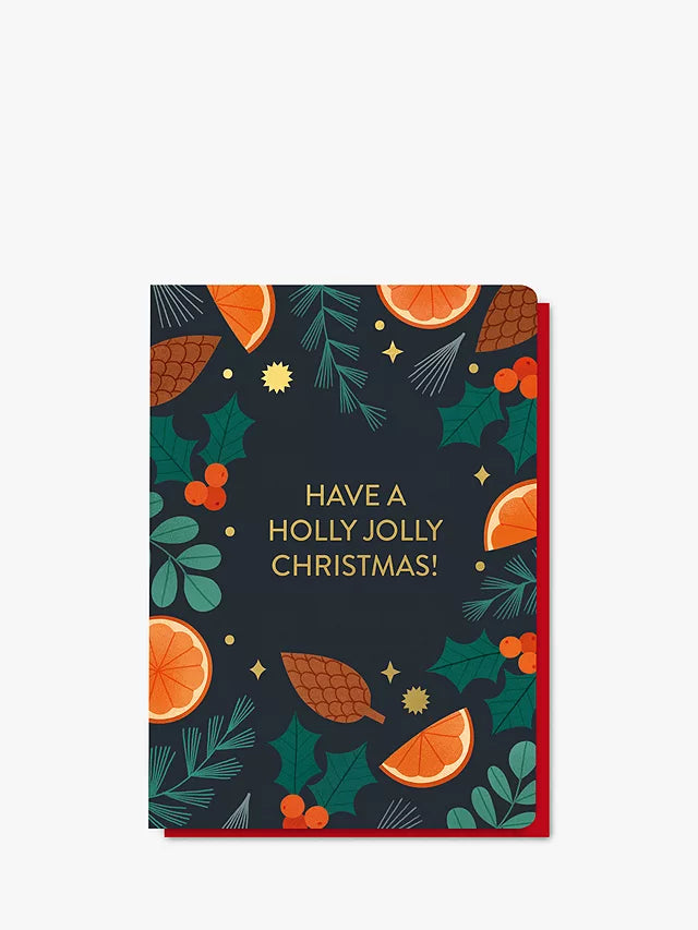 With a message inside that reads Have a Holly Jolly Christmas!, this card comes with a white envelope.
