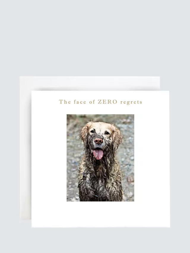 This Susan O'Hanlon Muddy Dog Zero Regret Blank Greeting Card is perfect for animal lovers. Featuring a unique and adorable design, this card is made from high-quality materials with no regrets. It's a thoughtful and heartfelt way to send your greetings and well-wishes.