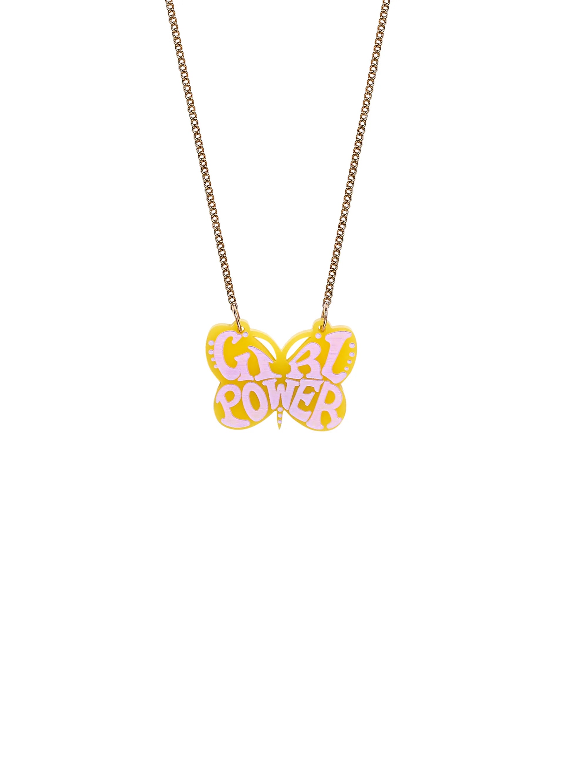 The perfect gift for every future feminist, the uplifting phrase "girl power" is hand inked in lilac lettering onto a 100% recycled yellow acrylic butterfly. Suspended from an adjustable gold-tone chain and handmade by our all-female team in the UK, £3.75 ($5) per piece of jewellery sold will be donated to support Equality Now’s essential global work.