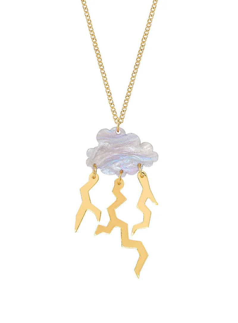 Metallic thundercloud necklace Original design, handcrafted in the UK Lightweight and easy-to-wear Hypoallergenic and gold-plated adjustable chain Presented in an eco-friendly gift box