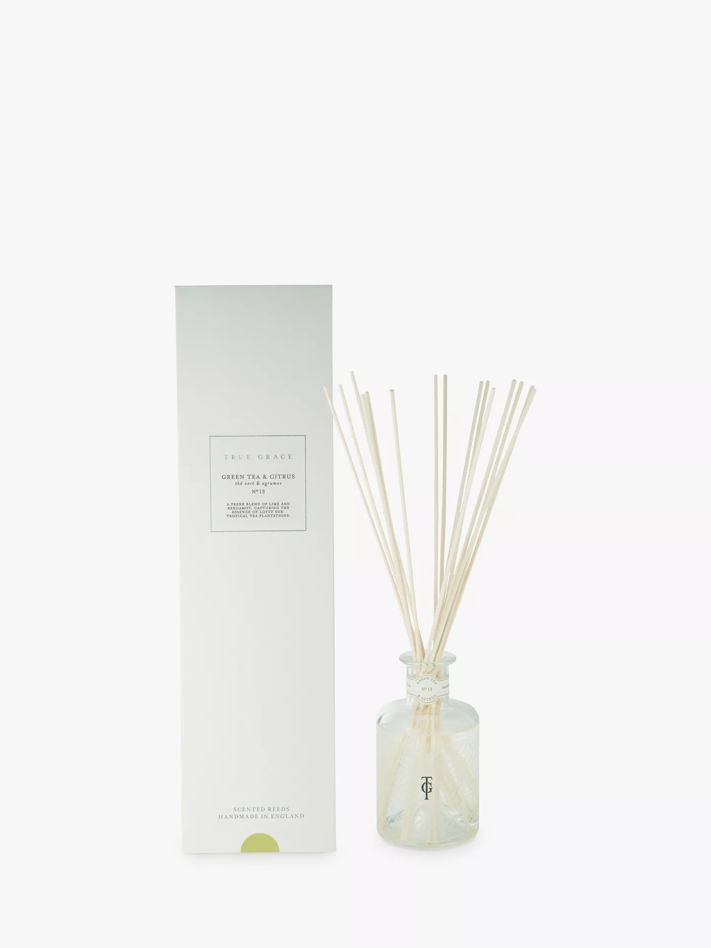 Green Tea & Citrus Diffuser Set fills the room with a light and cool scent. Made in small batches at our Wiltshire factory and fragrant with notes of Green tea, Thyme & Lime, this Villagediffuser is perfect for keeping the Kitchen, Bathroom or Hallway, fresh. Presented in a timeless etch-effect glass bottle, this diffuser contains 20% fragrance – the equivalent of a ‘pure perfume’ and stays fresh for up to 10 weeks.