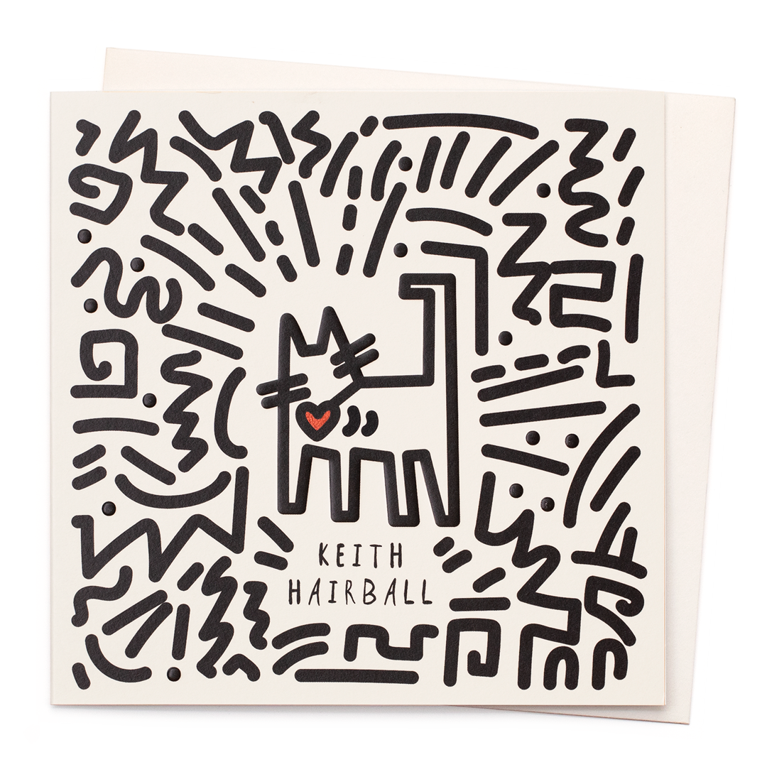 Niaski's 'Cats in Art' card no.06 is a feline interpretation of the distinctive style of Keith Haring, now reimagined as 'Keith Hairball.'