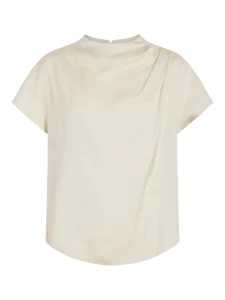 Vila Elmina Funnel Neck top features short sleeves and a high funnel neck for a chic, modern look. The regular fit and zip fastening ensure comfortable wear and easy dressing. Perfect for elevating any casual or office outfit.