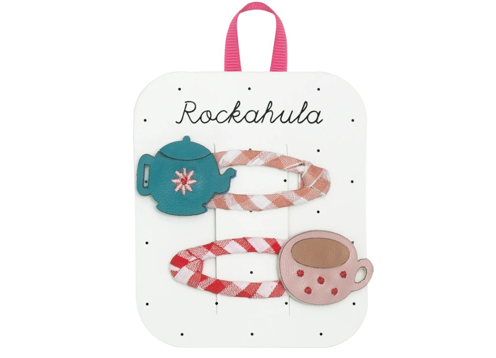 Our time for tea clips feature the cutest little tea pot and a cup of English tea! Sat upon two gingham ribbon wrapped snap clips, the perfect addition to those cosy afternoon tea parties!