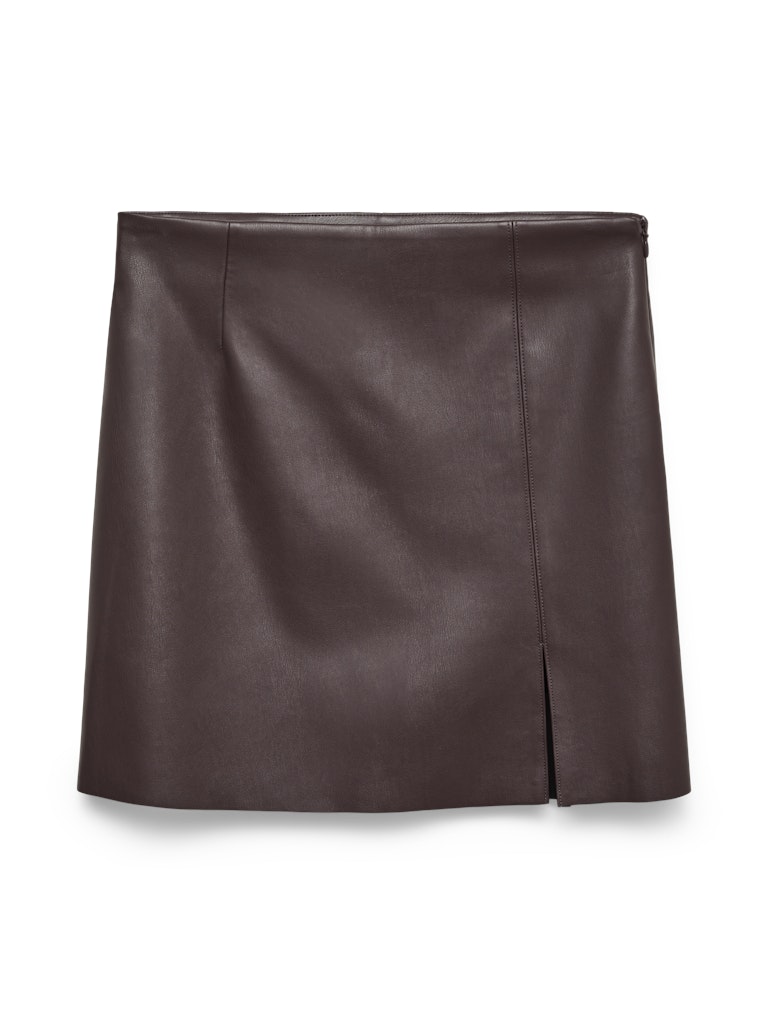 Matte finish short skirt in a beautiful fudge colour. Perfect for autumn.