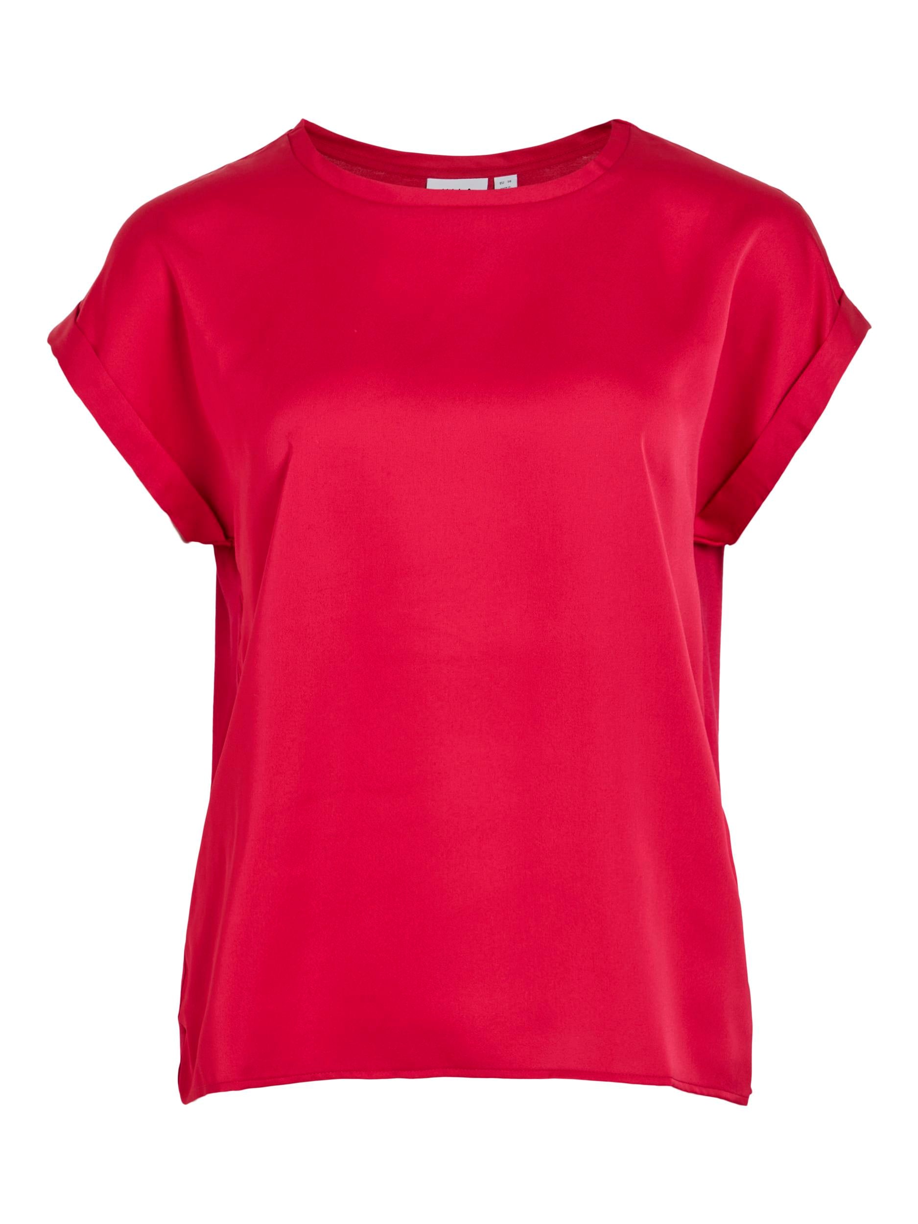 A piece of versatile excellence, this Vila Viellette Satin Top is a sartorial delight, with short sleeves, drop shoulders, and an O-neck, the front in a luxurious satin feel and the back in polyester. Crafted with recycled polyester, it's both...