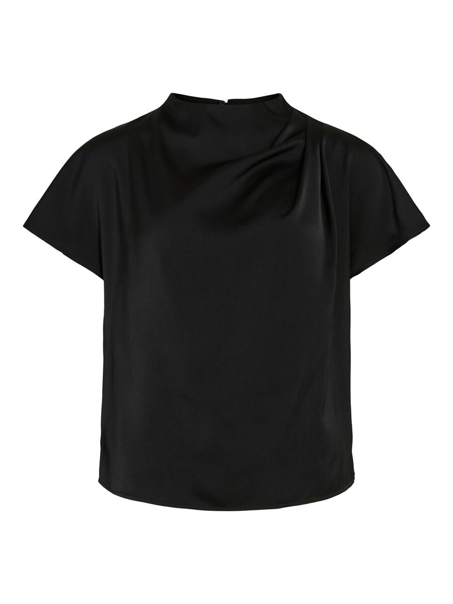 Vila Elmina Funnel Neck top features a high funnel neck and short sleeves for a chic, modern look. The regular fit and zip fastening ensure comfortable wear and easy dressing. Perfect for elevating any casual or office outfit.