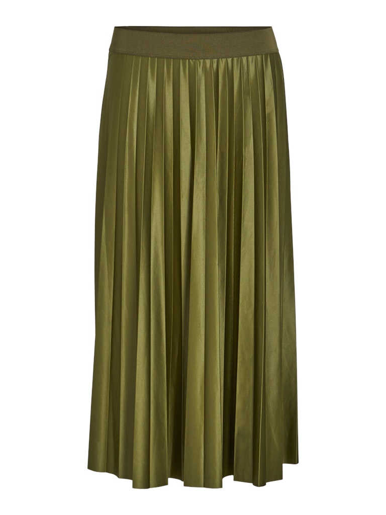 This pleated midi skirt is light with stretchy material and an elastic at the waist for all seasons and occasions.