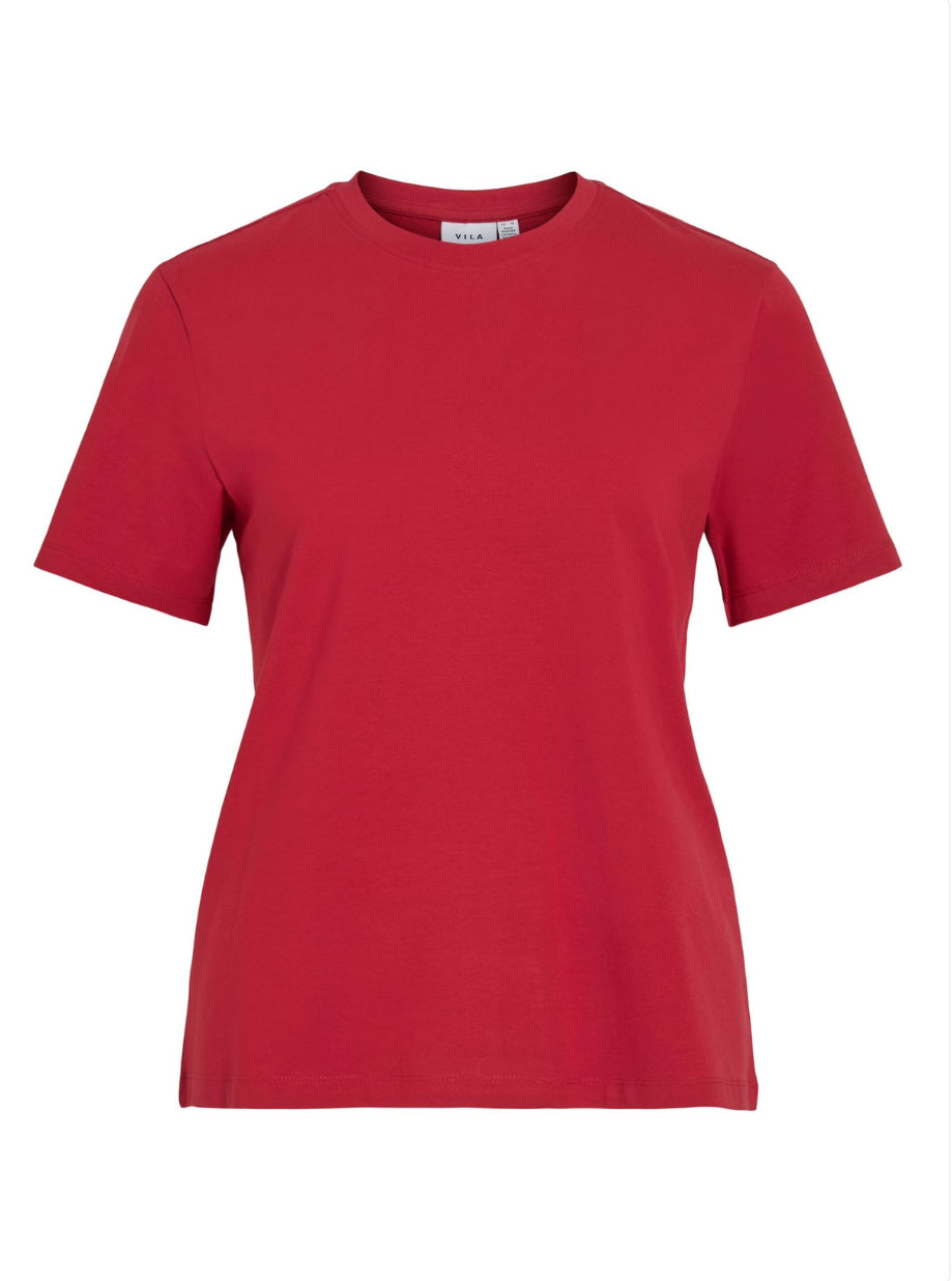 Effortlessly stylish and comfortable, the Vila Nora T-Shirt in Jester Red is a must-have addition to your wardrobe.