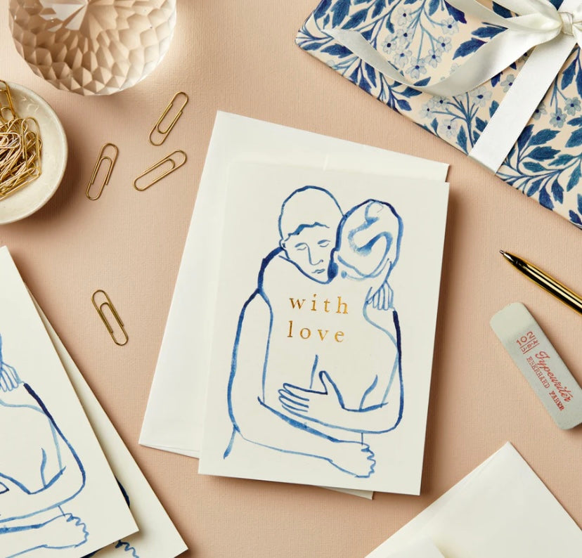 Paired with a matching envelope that features a vintage-inspired golden address label. Features a golden foil on the front and back of the card, proudly hand-printed in the Hove studio.